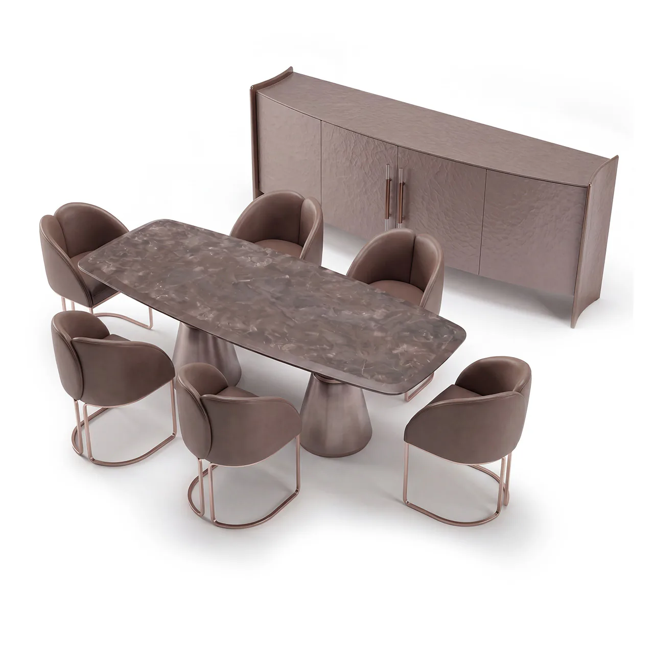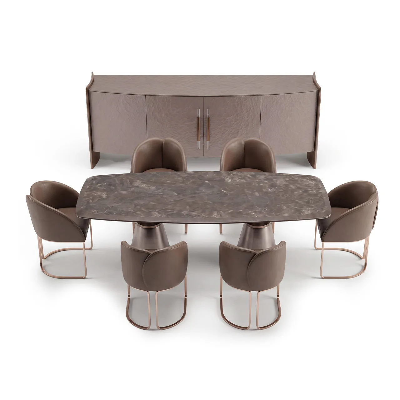 Kantorin Yemek Odası, Kantorin koleksiyonunun modern tasarım anlayışıyla üretilmiş bir yemek odası grubudur. Masa, konsol ve sandalyelerden oluşan bütünleşik kompozisyonuyla yemek alanına uyumlu bir düzen sunar. Koleksiyonun diğer parçalarıyla birlikte kullanıldığında mekânda bütünlüklü bir görünüm oluşturur. Günlük kullanım ve özel davetler için uygun, işlevsel bir tasarımdır.