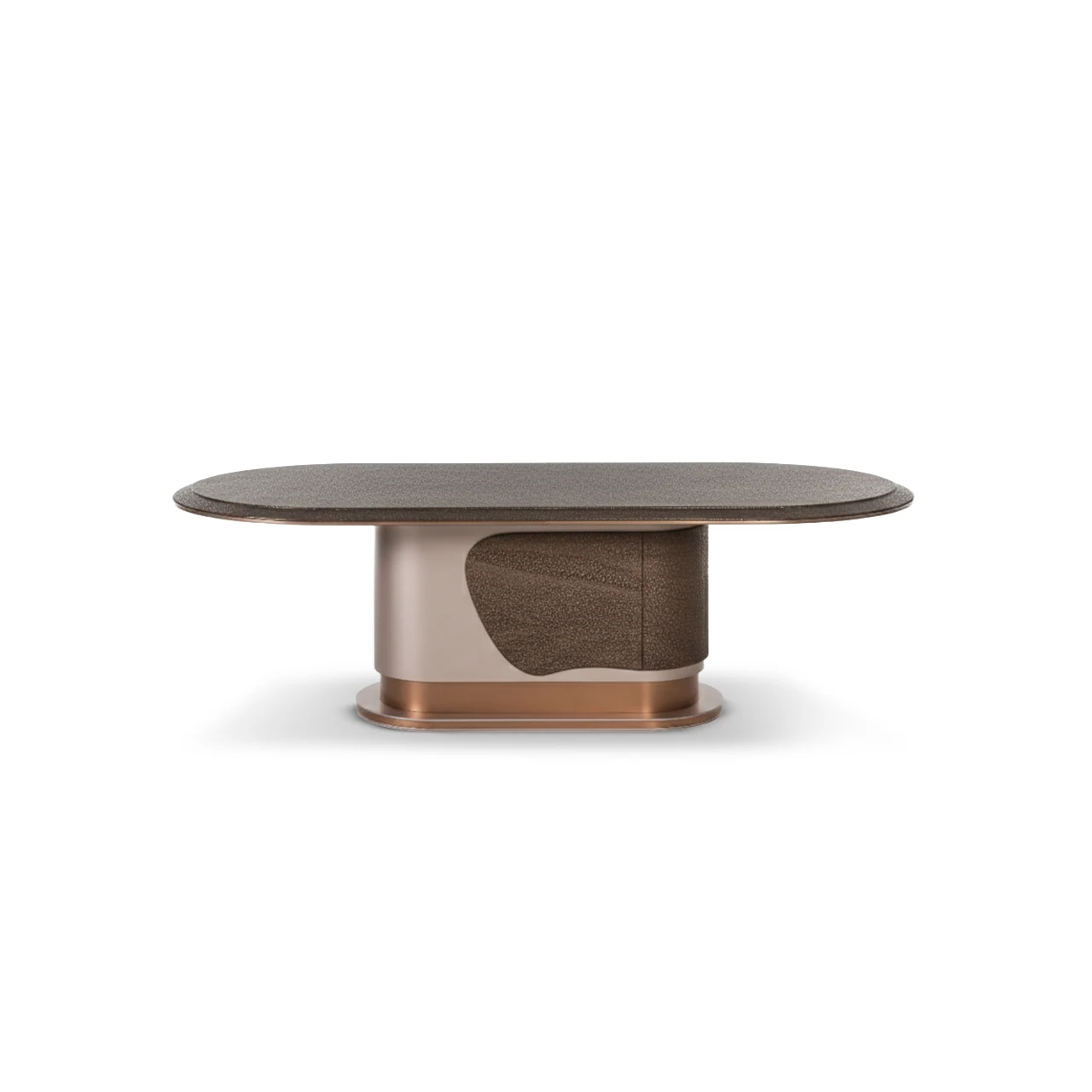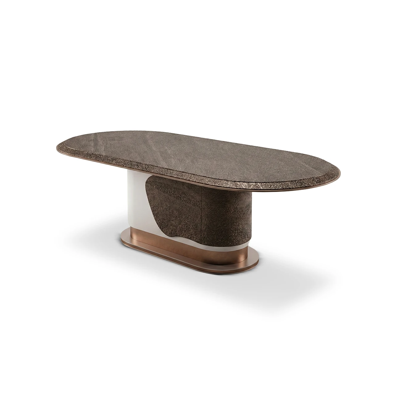 Sofistike oval formu, heykelsi ayak tasarımı ve bronz metal detaylarıyla Patara Yemek Masası, yemek odanızda modern lüksün en sanatsal halini sunuyor. Kusursuz el işçiliği ve premium malzeme kalitesinin buluşma noktası.