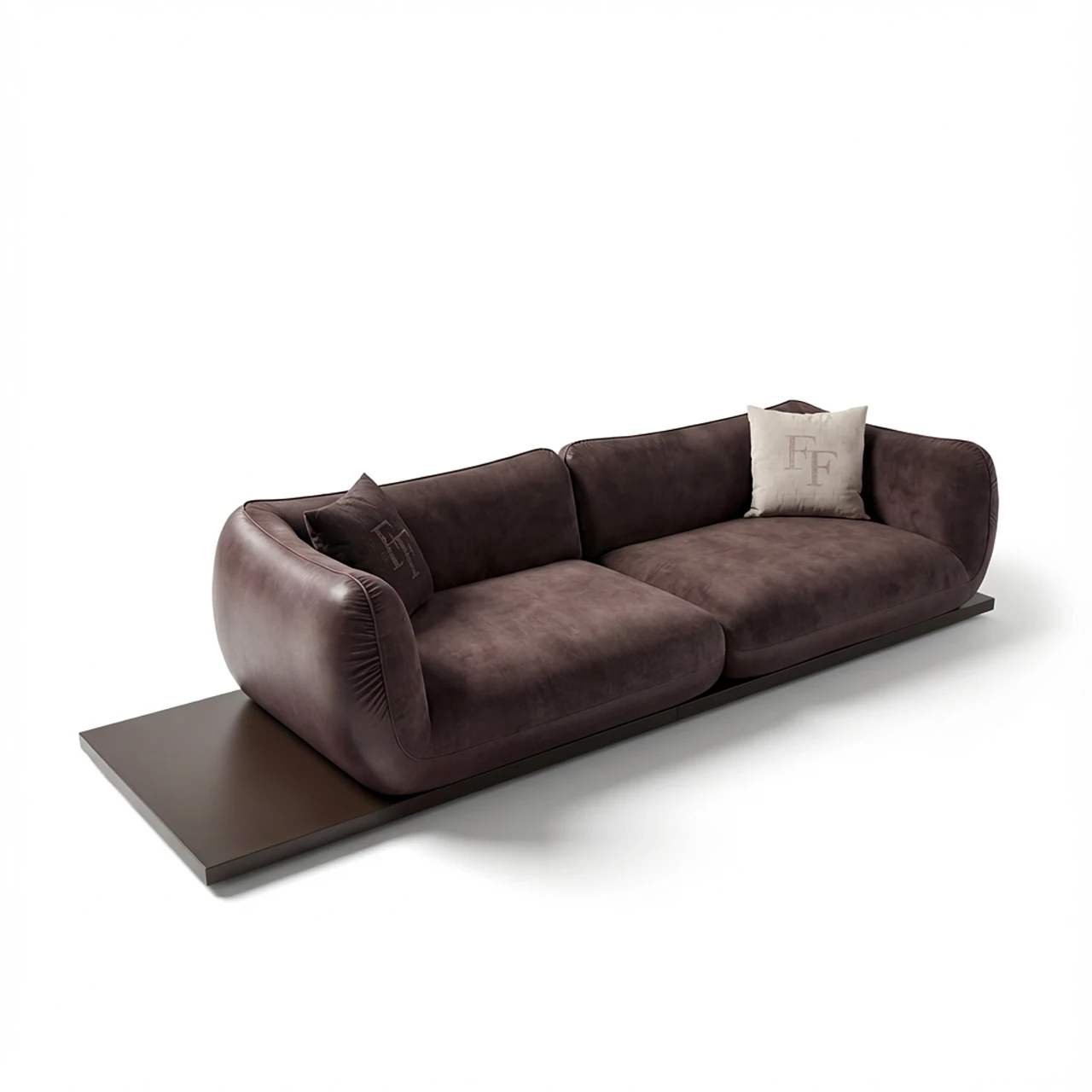 Ferhat Berbercan Mobilya’nın vizyoner çizgisini yansıtan Retro Kanepe, mekan algısını değiştiren heykelsi bir form sunar. Tasarımın zeminini oluşturan ve ürüne karakterini veren koyu tonlu mat platform kaide, keskin hatlarıyla modern mimariye atıfta bulunurken, yana doğru uzayan yapısıyla kusursuz bir entegre sehpa işlevi görür.